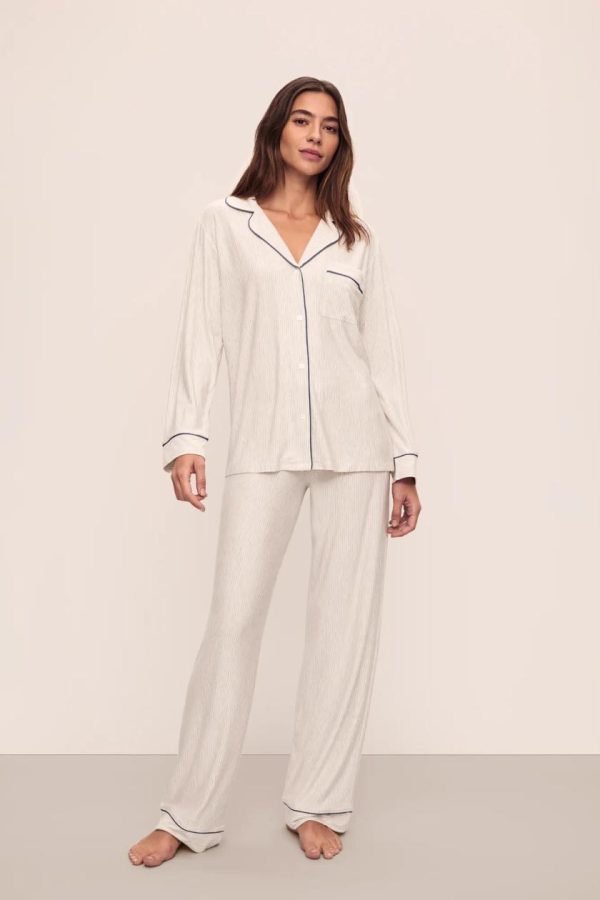 The PJ that started it all. Made from TENCEL™ Modal fibers and a touch of elastane, this buttery soft fabric is verified by OEKO-TEX® Standard 100, meaning it’s dyed with safe and non-toxic dyes. This relaxed long sleeve set features contrast piping, a button-front top with a notch collar and functional pocket, and a low-rise straight leg pant with a thin elastic waistband. Pairs well with our everyday lingerie and blissful ZZZ’s.