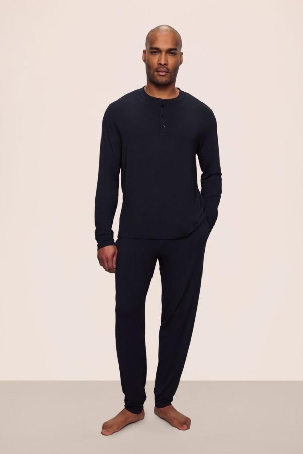 Give him a good night’s sleep, every night. Made from TENCEL™ Modal fibers and a touch of elastane, this temperature-regulating knit fabric is verified by OEKO-TEX® Standard 100, meaning it’s dyed with safe and non-toxic dyes. The relaxed-fit Henley long sleeve top has functional buttons at the neckline, while the pant features an elastic waistband, adjustable drawstring, faux fly, and functional pockets for added comfort.