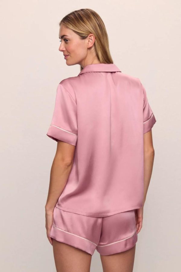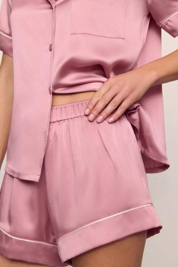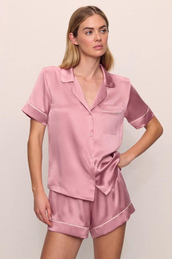 A dream to wear and a dream to wash. Made from 100% mulberry silk, our fabric is produced using bluesign®-certified processes and verified by OEKO-TEX® Standard 100, meaning it is processed without harmful chemicals or dyes in a mill that prioritizes safe and non-toxic practices. It’s hypoallergenic and thermoregulating, offering comfort year-round. This short sleeve set includes a boxy, notch collar button-down top and mid-rise relaxed fit shorts with an elastic waistband. Pairs well with our everyday lingerie and Sherpa Slippers.