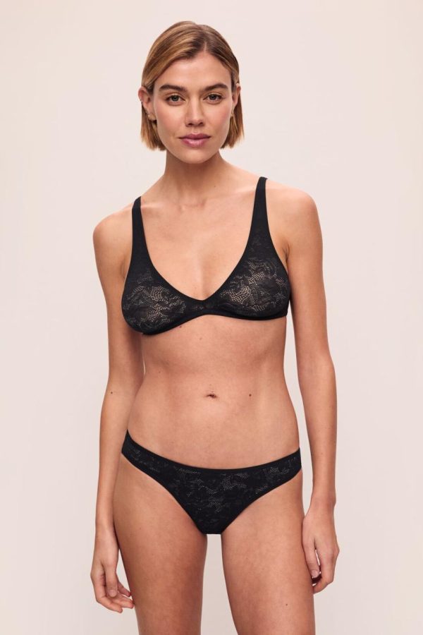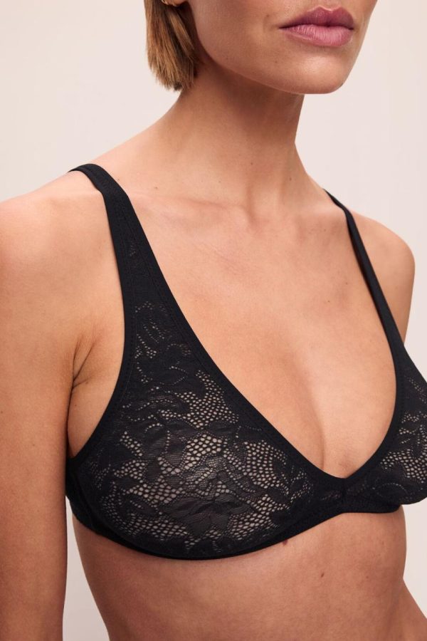 Soft Stretch Recycled Lace Plunge Bralette Black | Women Eberjey Lingerie